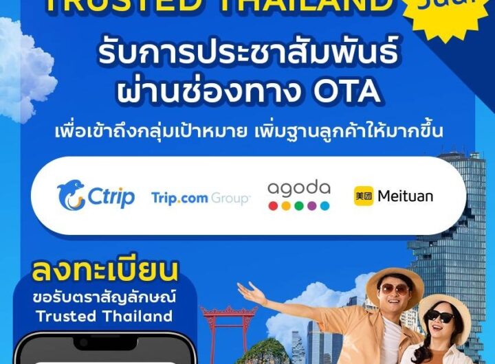 ขอเชิญสถานประกอบการในอุตสาหกรรมการท่องเที่ยว สมัครขอรับตราสัญลักษณ์ Trusted Thailand 1 min read BIZ ขอเชิญสถานประกอบการในอุตสาหกรรมการท่องเที่ยว สมัครขอรับตราสัญลักษณ์ Trusted Thailand เพื่อยกระดับมาตรฐานความปลRead More