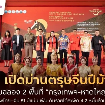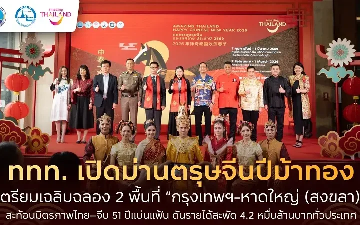 ททท. เปิดม่านตรุษจีนปีม้าทอง ฉลอง 2 พื้นที่ “กรุงเทพฯ-หาดใหญ่” สะท้อนมิตรภาพไทย–จีน 51 ปีดันรายได้ 4.2 หมื่นล้านบาท 1 min read VACATION ททท. เปิดม่านตรุษจีนปีม้าทอง ฉลอง 2 พื้นที่ “กรุงเทพฯ-หาดใหญ่” สะท้อนมิตรภาพไทย–จีน 51 ปีดันรายได้ 4.2 หมื่นล้านบาท วันที่ 5 กุมภาพันธ์ 2569 Read More