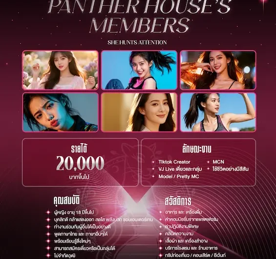 3 บริษัทยักษ์ใหญ่ “กรังด์ปรีซ์-กันตนา-อมรินทร์” แท็กทีมเปิดรับสมัครสาว ๆ ที่ชอบไลฟ์ ชอบเต้น ชอบแสดงออก มาร่วมทำงานภายใต้ “Panther House”