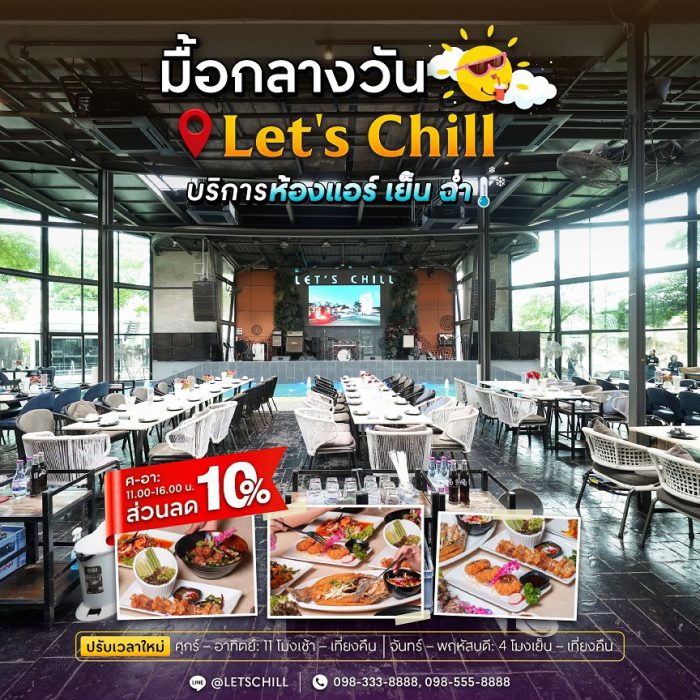 สนใจสำรองที่นั่งได้ที่ Tel: 098-555-8888 หรือ 098-333-8888 หรือสอบถามเพิ่มเติมได้ที่ Facebook Fanpage https://www.facebook.com/letschill.mr?mibextid=LQQJ4d